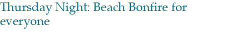 |  |  | Thursday night from 7:30-9:30, everyone is invited for a family friendly beach bonfire. We will celebrate the wedding party over smores, dessert, and cocktails.   |
